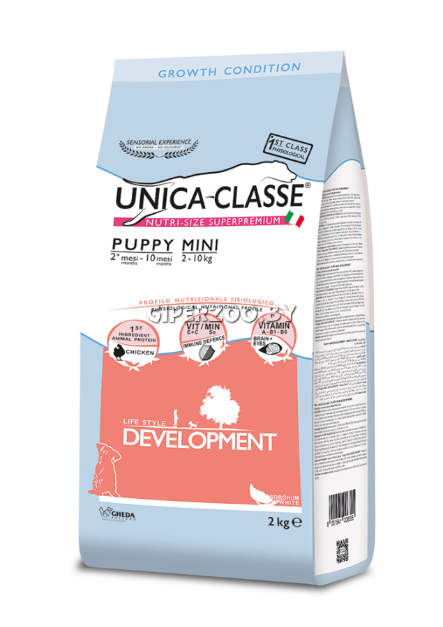 Сухой корм Unica Classe Puppy Mini Development для щенков мелких пород (курица), 2 кг - это полнорационный сухой корм для щенков с 2 до 10 месяцев.