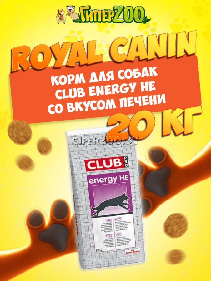 Royal Canin Club Energy HE, 20 кг - полнорационный сухой корм с высоким содержанием энергии для взрослых собак, в возрасте от 1 года, испытывающих кратковременные интенсивные или умеренные нагрузки.