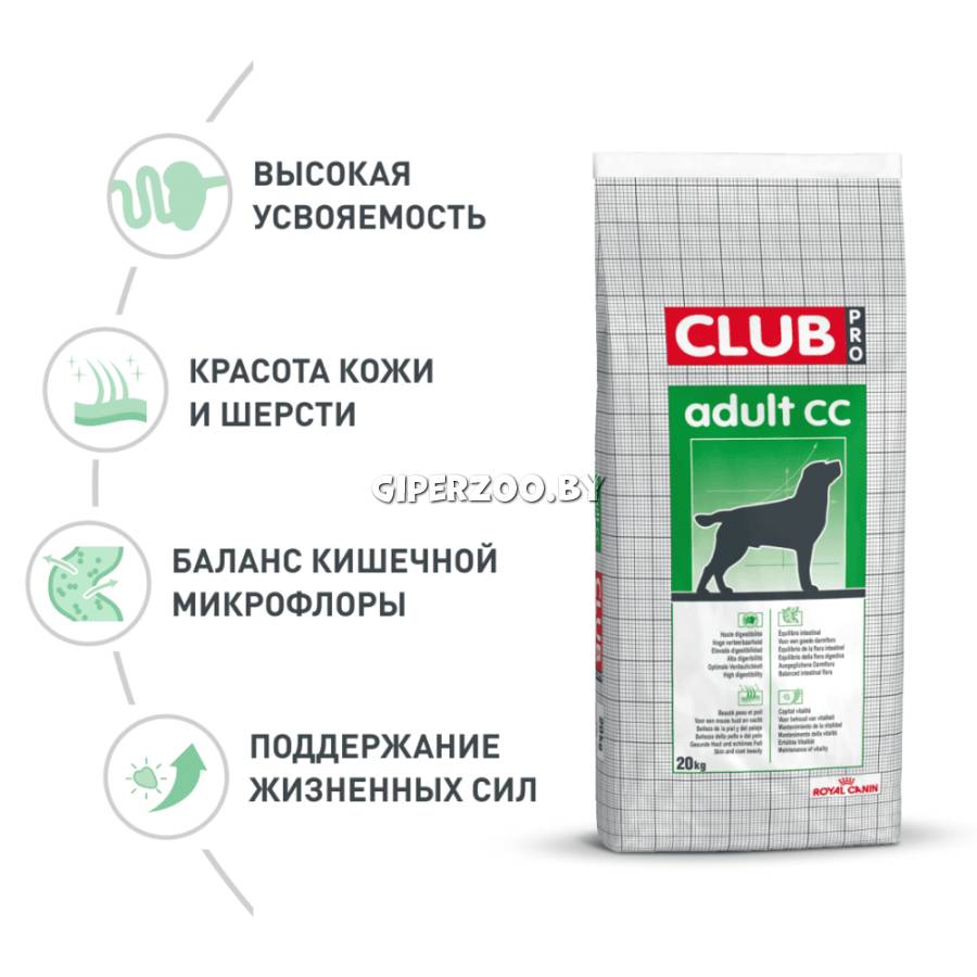 Royal Canin Club CC, 20 кг - здоровое и вкусное полнорационное питание для взрослой собаки средней и крупной породы с нормальной активностью (от 12 месяцев).