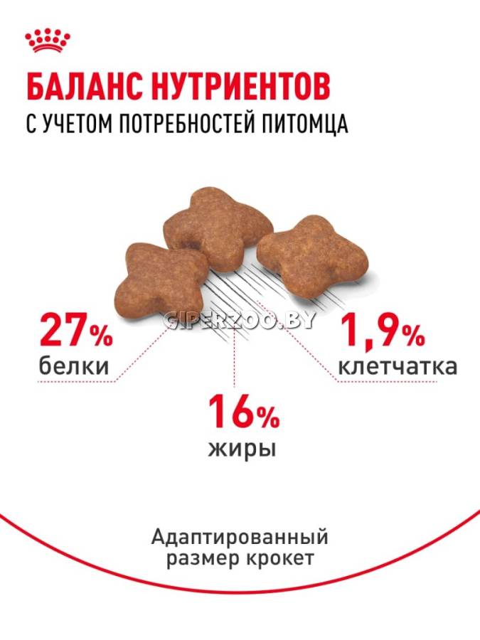 Royal Canin Mini Adult, 800 гр (РОЯЛ КАНИН МИНИ АДАЛТ) - это полнорационный корм для взрослых собак мелких размеров (весом от 1 до 10 кг) в возрасте 10 месяцев и старше.