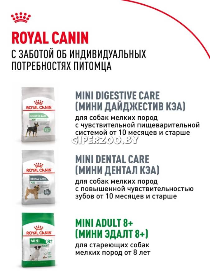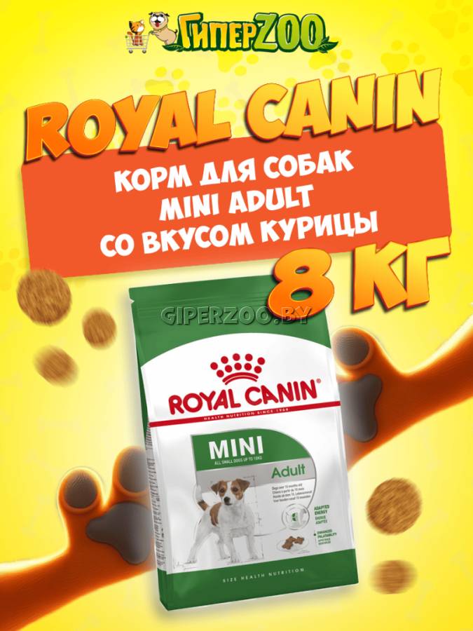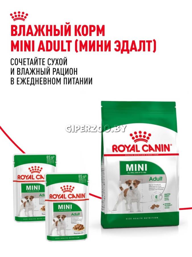 Royal Canin Mini Adult, 8 кг (РОЯЛ КАНИН МИНИ АДАЛТ) - это полнорационный корм для взрослых собак мелких размеров (весом от 1 до 10 кг) в возрасте 10 месяцев и старше.