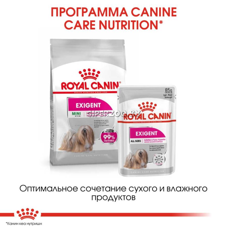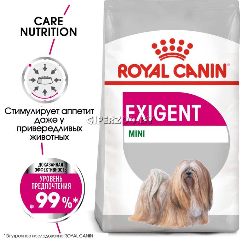 Royal Canin Exigent Mini, 1 кг - это полнорационный сухой корм для взрослых и стареющих собак мелких размеров (весом от 1 до 10 кг) в возрасте 10 месяцев и старше, привередливых в питании.