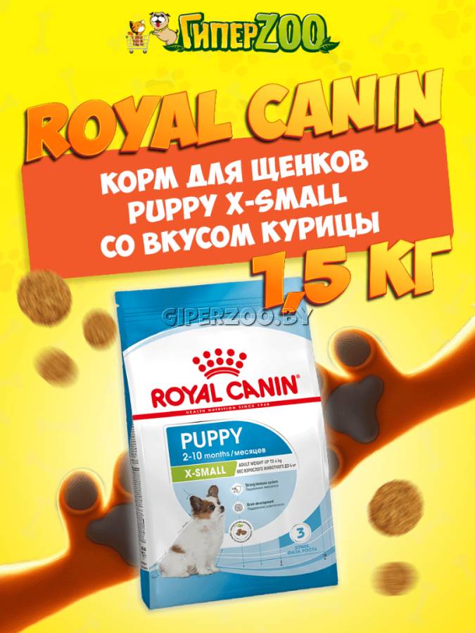 Royal Canin Puppy X-Small, 1,5 кг - полнорационный сбалансированный сухой корм для щенков миниатюрных размеров от 2 до 10 месяцев.