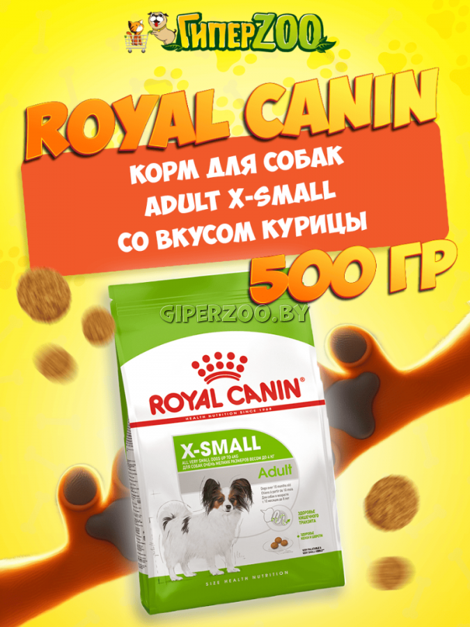 Royal Canin Adult X-Small, 500 гр - полнорационный сбалансированный сухой корм для взрослых собак миниатюрных размеров от 10 месяцев до 8 лет.