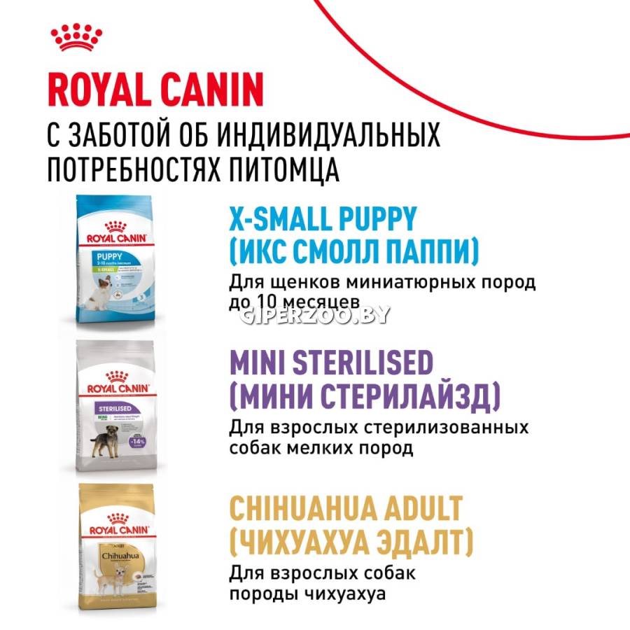 Royal Canin Adult X-Small, 1,5 кг - полнорационный сбалансированный сухой корм для взрослых собак миниатюрных размеров от 10 месяцев до 8 лет.