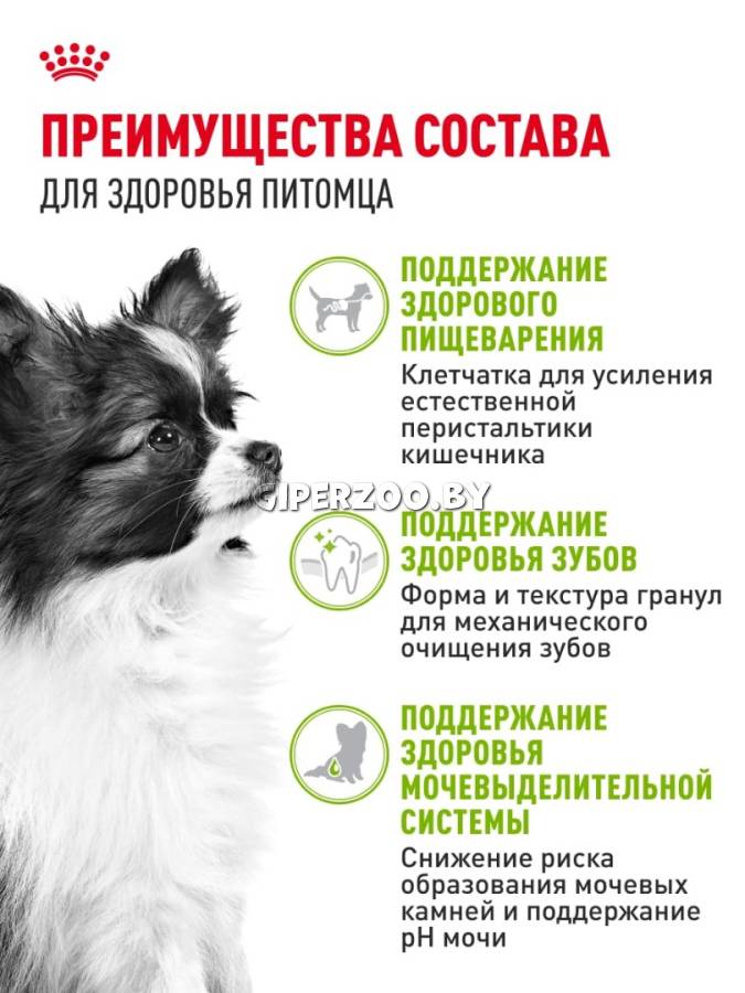 - Поддерживает здоровье зубов при миниатюрных размерах челюстей