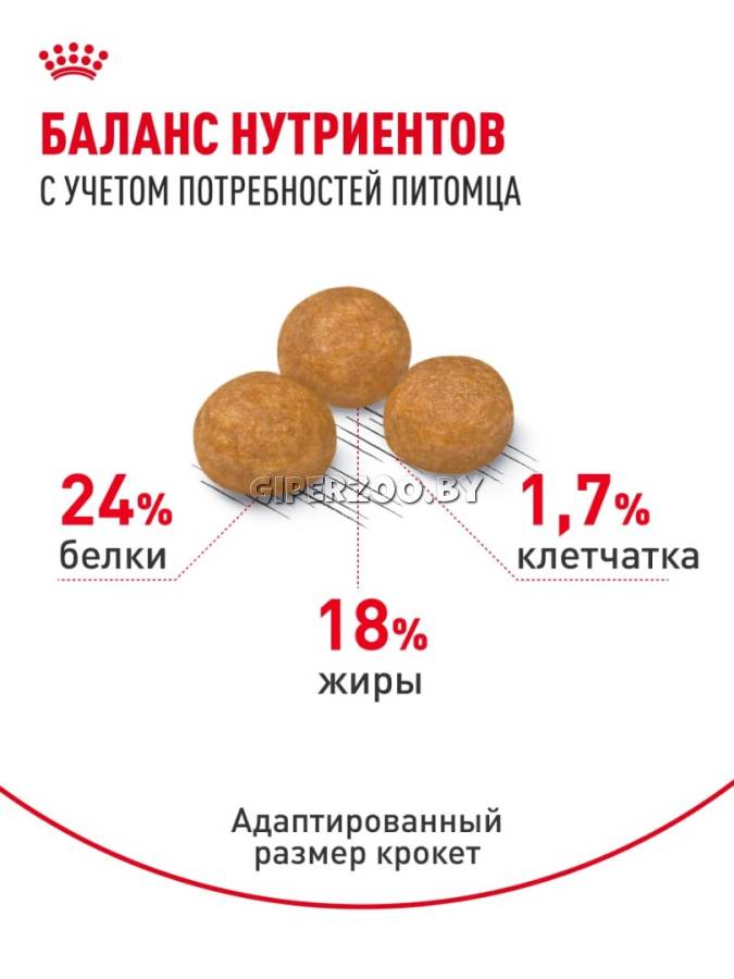 Кроме того, ROYAL CANIN® X-Small Adult способствует поддержанию здоровья мочевыделительной системы представителей миниатюрных пород.