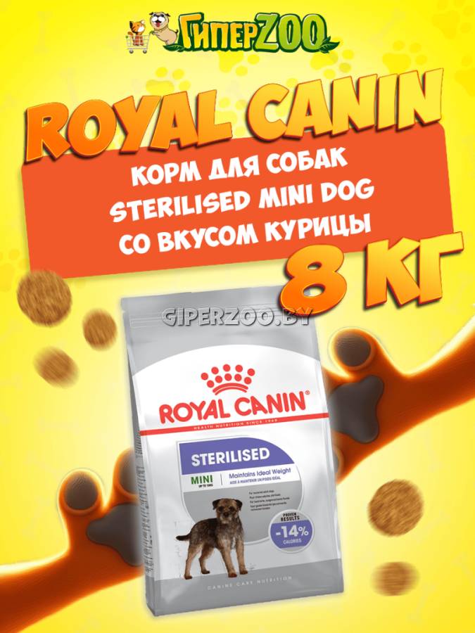 Royal Canin Sterilised Mini, 8 кг - корм для стерилизованных собак. Комбинация высокого содержания белков и умеренного содержания жиров помогает поддерживать идеальный вес.