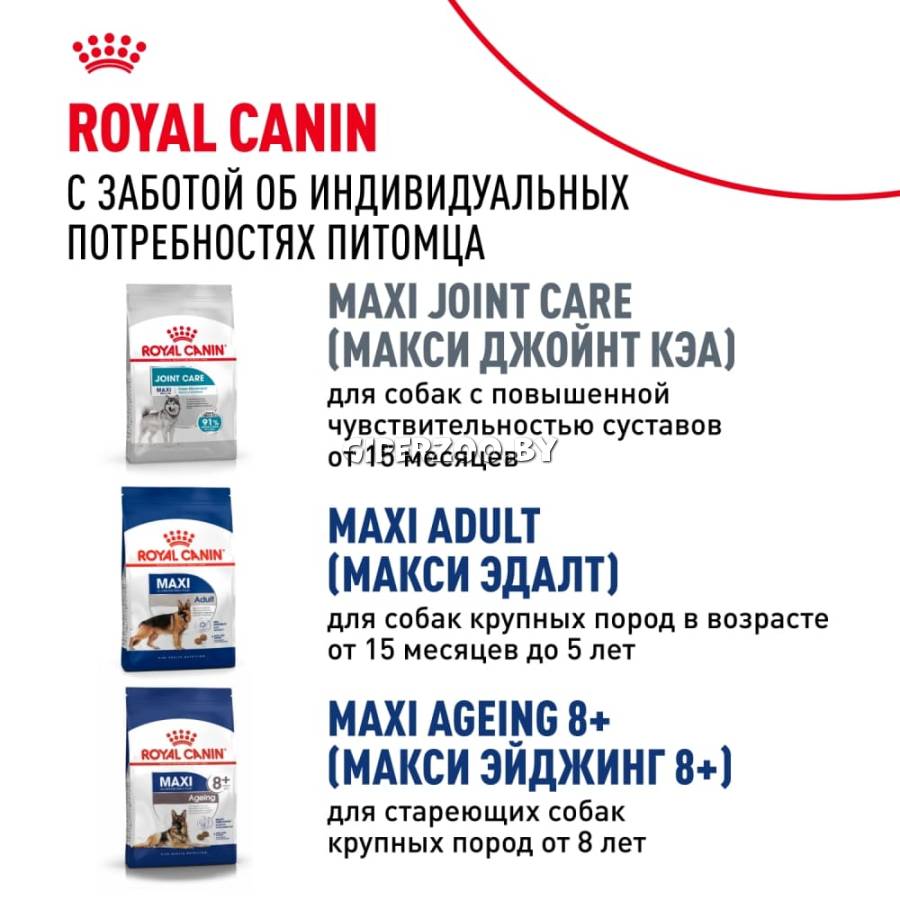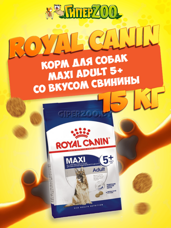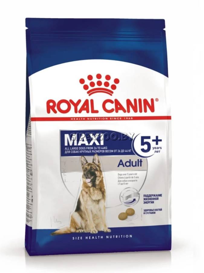 Royal Canin Maxi Adult 5+, 15 кг - полнорацианный корм для стареющих крупных собак (вес от 25 до 45 кг) в возрасте с 5 до 8 лет.