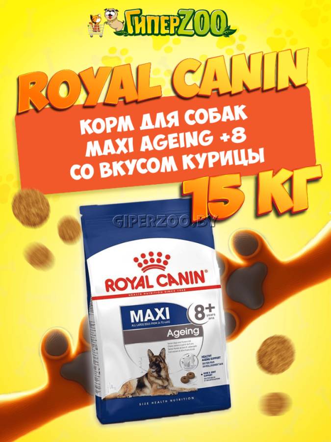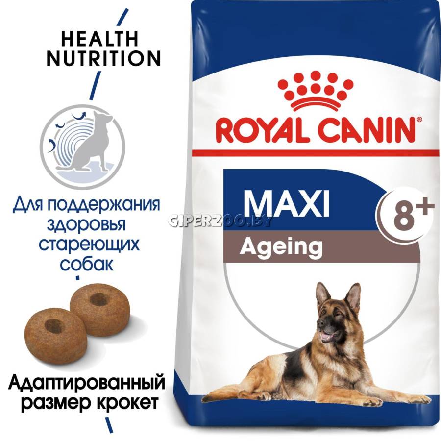 Royal Canin MAXI AGEING +8, 15 кг - это полнорационный для стареющих собак крупных размеров (весом от 26 до 44 кг) в возрасте 8 лет и старше.