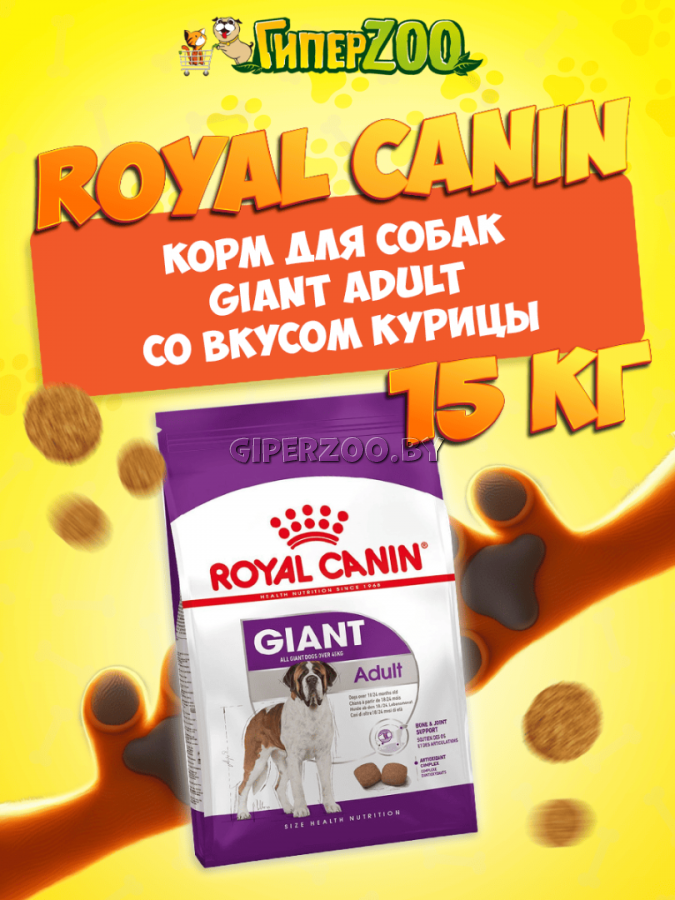 Royal Canin Giant Adult, 15 кг - сухой корм для собак в возрасте 18/24 месяцев и старше. GIANT Adult удовлетворяет особые потребности очень крупных собак (весом свыше 45 кг).