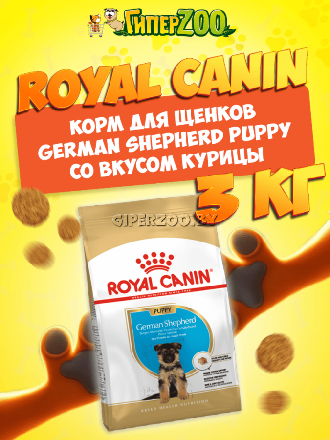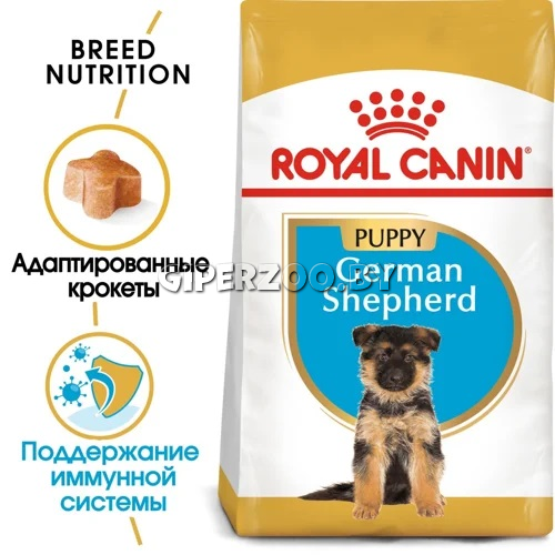 Сухой корм Royal Canin German Shepherd Puppy 3 кг - подходит для щенков немецкой овчарки в возрасте до 15 месяцев и специально разработан с учетом всех потребностей вашего питомца в период роста.