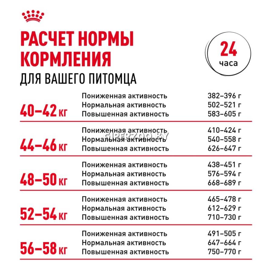 Дозируйте продукт в соответствии с нормами кормления, чтобы избежать чрезмерного потребления калорий, при этом следует обеспечить животное ежедневной физической активностью в достаточном объеме.