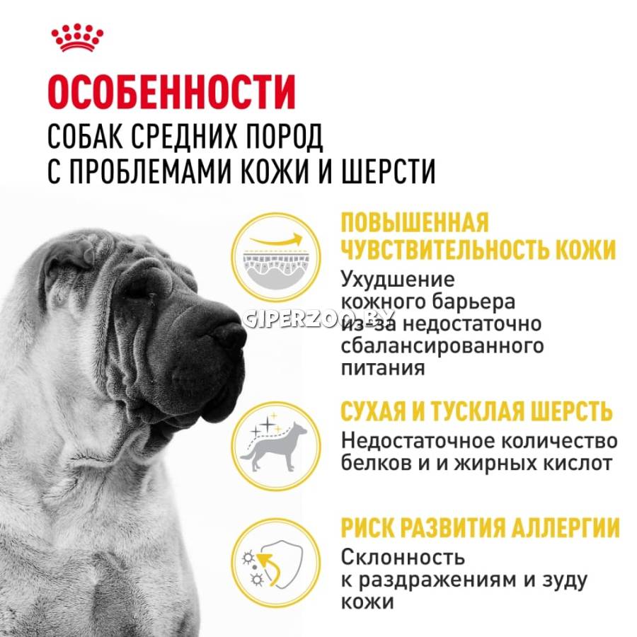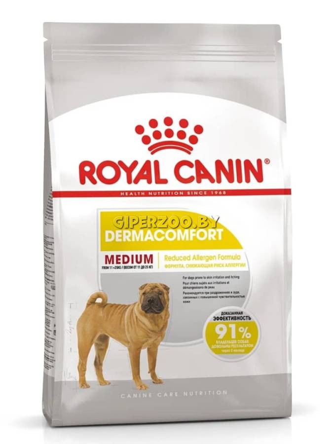 Royal Canin Dermacomfort Medium, 10 кг - для взрослых (старше 12 месяцев) и стареющих собак средних размеров (вес собаки от 11 до 25 кг).