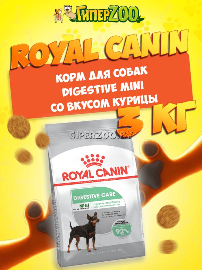 Корм ROYAL CANIN® Digestive Care Mini имеет доказанную эффективность. ROYAL CANIN® было проведено исследование, согласно которому до 92% владельцев заметили улучшение качества стула собаки, что свидетельствует о нормализации общего состояния желудочно-кишечного тракта.