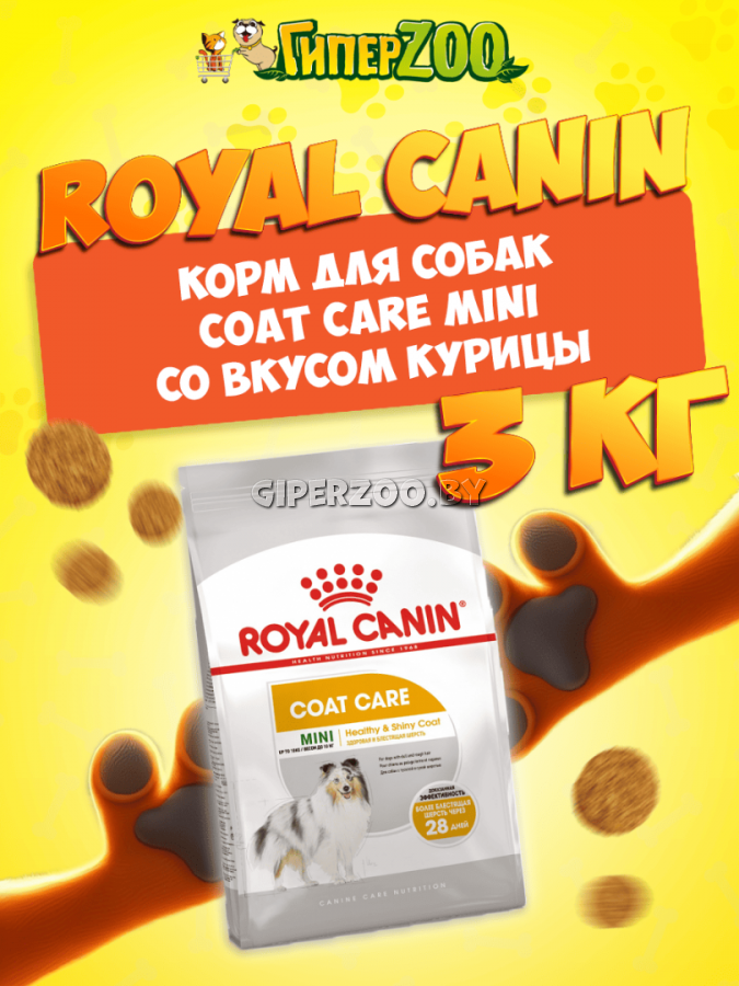 Royal Canin Coat Care Mini, 3 кг - корм для собак с тусклой и сухой шерстью. Густой и шелковистый шерстный покров вашей собаки - следствие сбалансированного питания и хорошего здоровья. Рацион питает красивую шерсть изнутри.