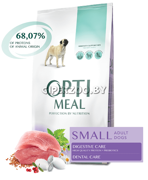 Optimeal для взрослых собак малых пород (Утка), 12 кг - это сухой корм для взрослых собак малых пород (до 10 кг).