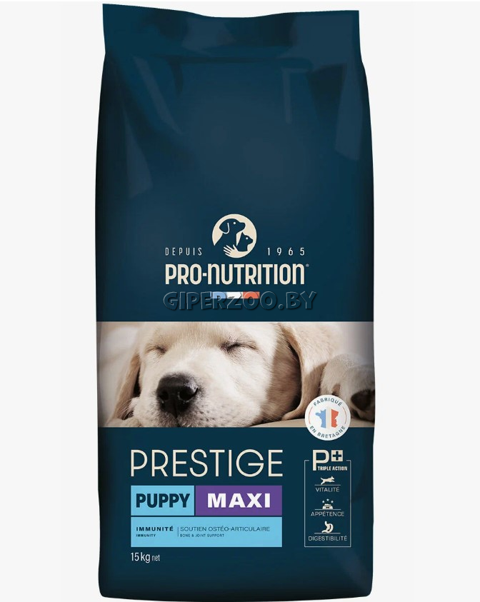 Эти крокеты обеспечивают щенков всеми необходимыми питательными веществами и адаптированы к скорости их роста и размеру, которого они достигнут во взрослом возрасте. Вашему щенку понравится восхитительный вкус гранул Prestige Puppy Maxi.