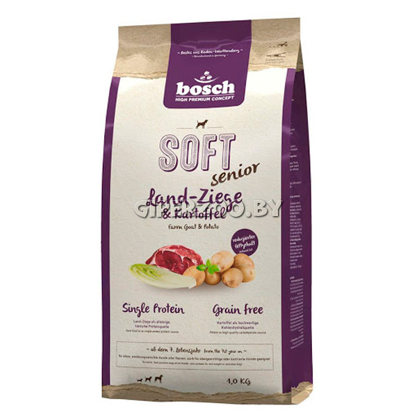 Bosch Soft Senior коза с картофелем - корм для сбалансированного и здорового питания кастрированных, пожилых собак, и собак с лишним весом всех пород.