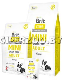 Сухой корм для собак Brit Care Mini GF Adult Lamb (Брит для взрослых собак мелких пород, Ягненок), 2 кг. - беззерновой гипоаллергенный корм для взрослых собак миниатюрных пород.