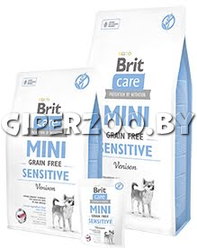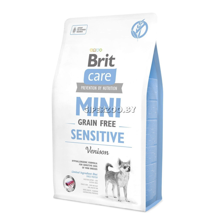 Сухой корм для собак Brit Care Mini GF Sensitive Venison (Брит беззерновой Мини чувствительное пищеварение, оленина), 7 кг - беззерновой гипоаллергенный корм для собак миниатюрных пород с чувствительным пищеварением