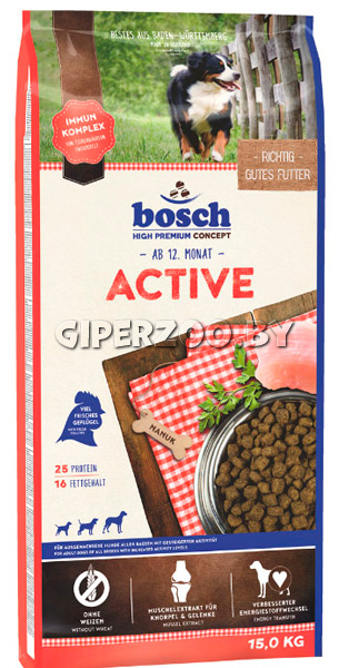 Сухой корм Bosch Active произведён на основе свежего мяса домашней птицы без использования злаков. Особый состав, насыщенный питательными веществами и минералами, позволяет собакам, ведущим активный образ жизни, получать всю необходимую энергию.