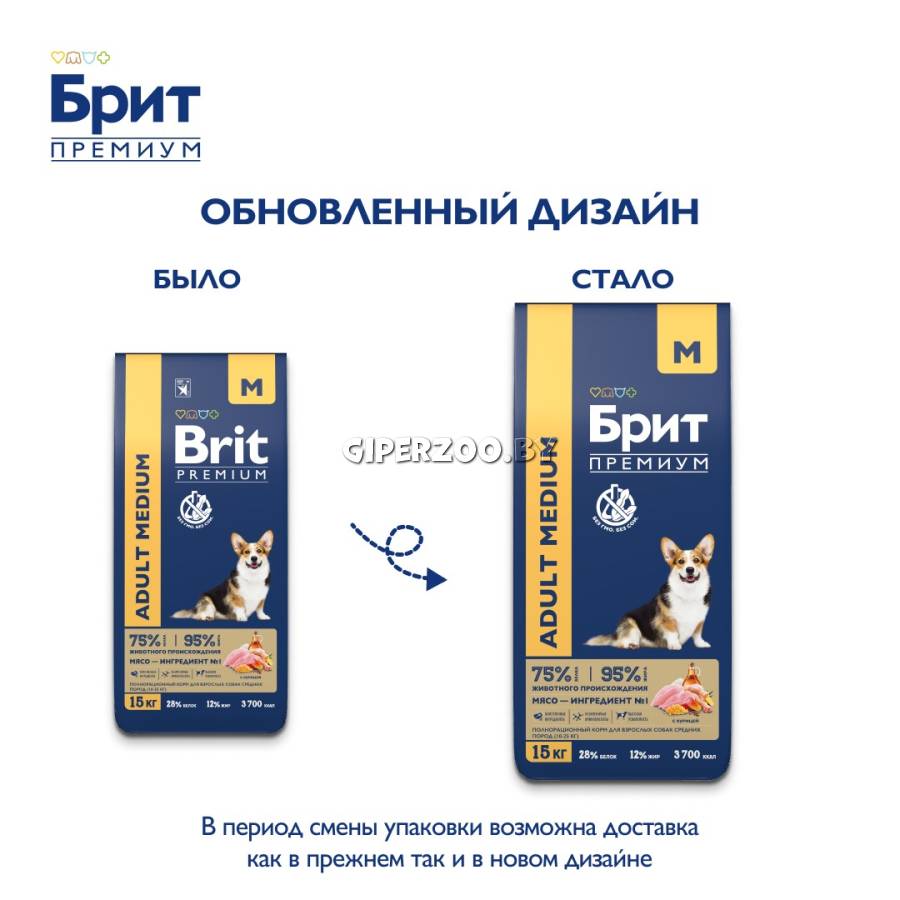 Брит Премиум Сухой корм для взрослых собак средних пород с курицей Dog Adult Medium (Brit Premium) - полнорационный сухой корм премиум класса с высоким содержанием мяса 30%, в том числе мясо курицы 14%. Состав идеально сбалансирован и отвечает всем потребностям в зависимости от возраста и породы. Содержание незаменимых аминокислот способствуют здоровому гармоничному развитию.