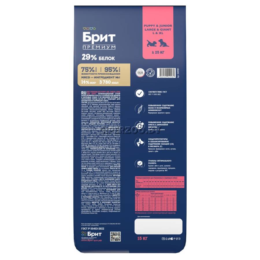 Брит Премиум Сухой корм для щенков и молодых собак крупных и гигантских пород с курицей Dog Puppy and Junior Large and Giant (Brit Premium) - корм премиум класса с высоким содержанием мяса 30%, в том числе мясо курицы 14%. Состав идеально сбалансирован и отвечает всем потребностям щенков в зависимости от породы. Содержание незаменимых аминокислот способствуют здоровому гармоничному развитию.
