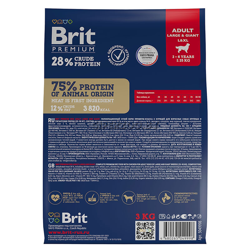Brit Premium Dog Adult Large and Giant (Курица), 15 кг