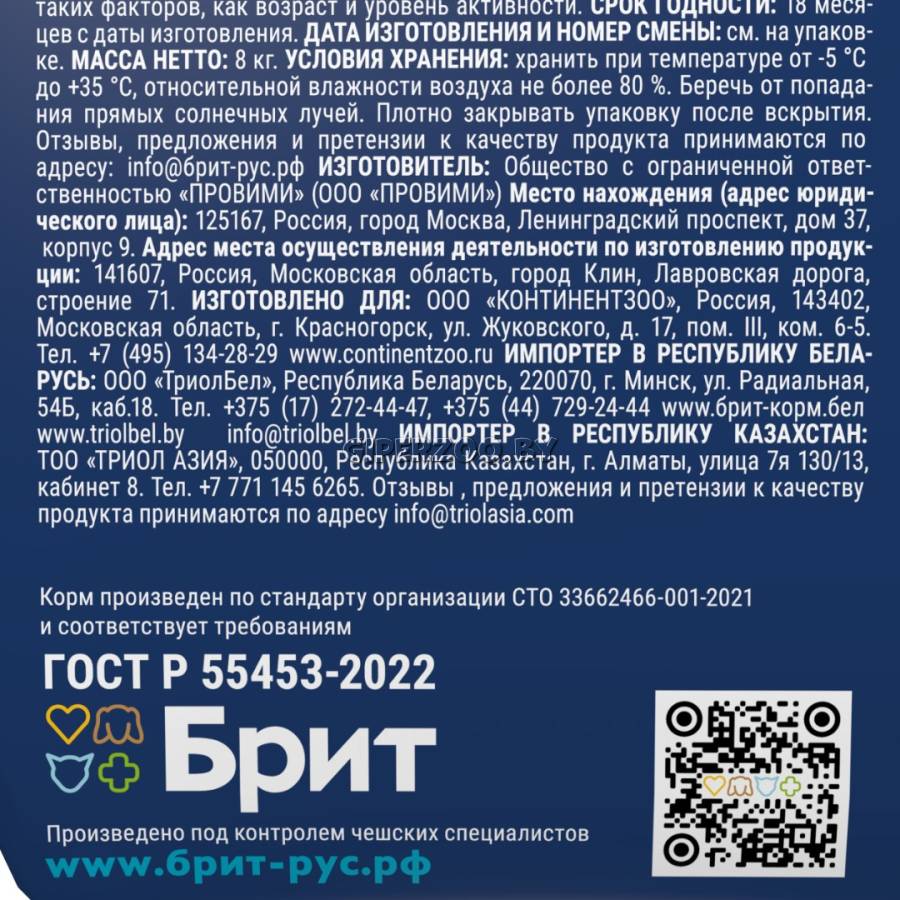 Состав идеально сбалансирован и отвечает всем потребностям в зависимости от возраста и породы.