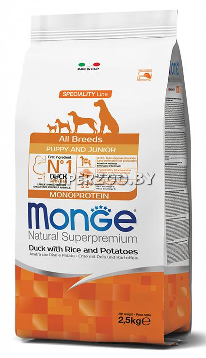 Monge Dog Grain Free Puppy & Junior (Утка, картофель) - это полноценная сбалансированная беззерновая диета для щенков, склонных к аллергической реакции на глютен, а также для молодых животных, ведущих активный образ жизни.