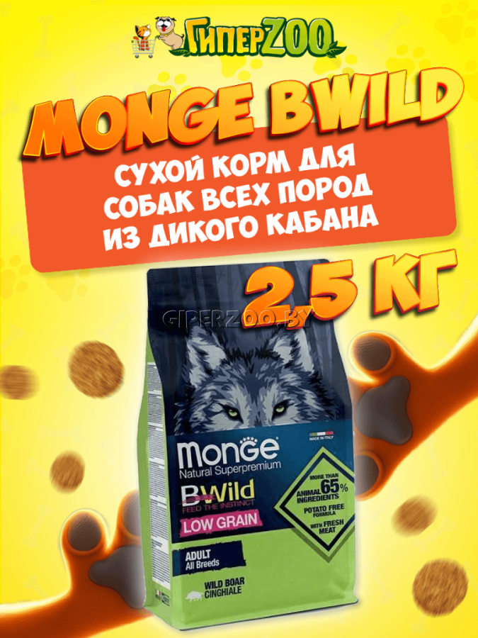 Monge BWild Low Grain Adult All Breeds (дикий кабан), 2,5 кг - это полноценный и сбалансированный корм для взрослых собак.