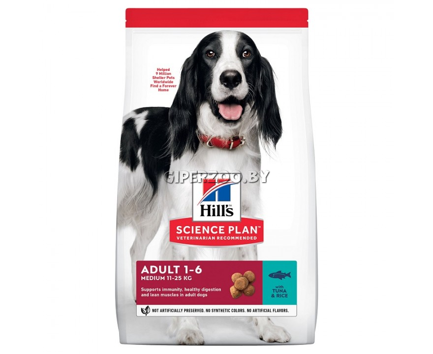 Корм для собак Hill's Science Plan Medium Adult (тунец/рис) - специально разработан для обеспечения энергетических потребностей собак средних пород в самом расцвете их жизни.