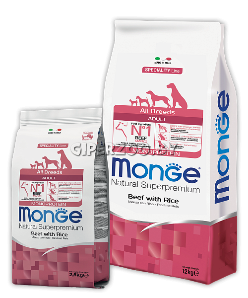 Monge Monoprotein Adult All Breeds (говядина и рис), 15 кг