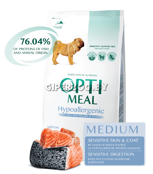 Optimeal для взрослых собак средних и крупных пород (Лосось), 12 кг - гипоаллергенный полнорационный сухой корм для взрослых собак средних и крупных пород.