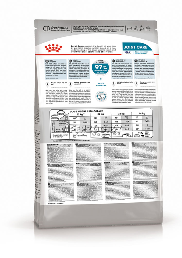 Собаки крупных размеров – особенно самые подвижные и активные из них – могут испытывать чрезмерную нагрузку на суставы. Иногда это становится причиной боли, неприятных ощущений и скованности движений. ROYAL CANIN® Joint Care Maxi – это аппетитный корм, который содержит питательные вещества для защиты костей и суставов. Он поможет собаке вести здоровую и активную жизнь, полную игр и веселья.