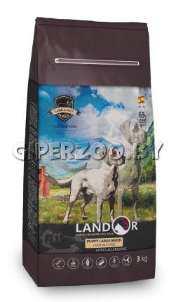 Сухой корм для собак Landor Pappy Large (ягненок и рис), 3 кг - полнорационный сухой гипоаллергенный корм супер премиум класса для щенков крупных пород ягненок с рисом.