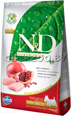 Farmina N&D Adult Mini (курица и гранат), 800 гр - полнорационный корм для взрослых собак мелких пород с низким содержанием зерна.