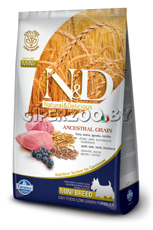 Farmina N&D GF Adult Mini Lamb & Blueberry (ягненок, черника), 0,8 кг - это полнорационный беззерновой корм, подходящий для взрослых собак мелких пород.
