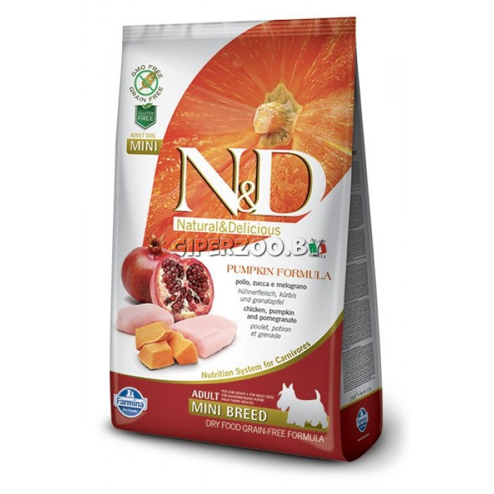 Farmina N&D Grain Free Pumpkin Dog Chicken & Pomegranate Adult Mini - полнорационное беззерновое питание для собак мелких пород (курица, тыква, гранат).