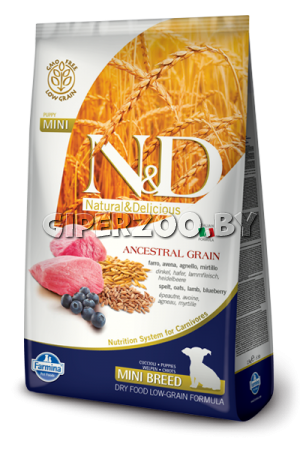 Farmina N&D Low Grain Lamb & Blueberry Puppy Mini, 800 гр - полнорационный корм с низким содержанием зерна для щенков мелких пород, беременных и кормящих собак (ягненок, черника).