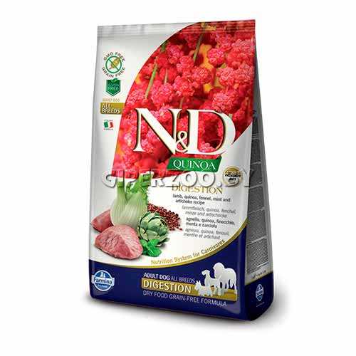 FARMINA DOG N&D GRAIN FREE QUINOA DIGESTION LAMB – уникальная формула для чувствительного пищеварения, полезная для здоровья кишечника.