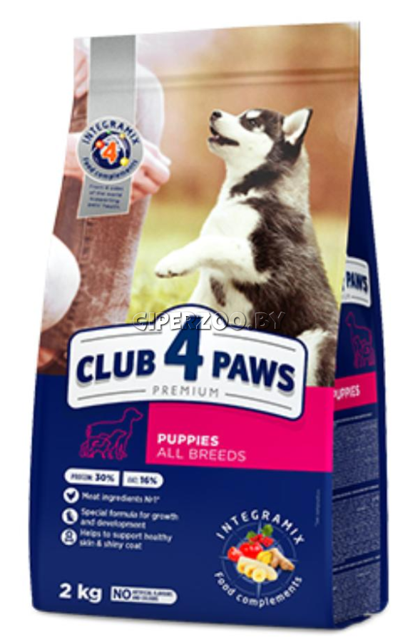Сухой корм для щенков Club 4 Paws (курица), 2 кг - это полнорационный сухой корм с высоким содержанием курицы для щенков всех пород.