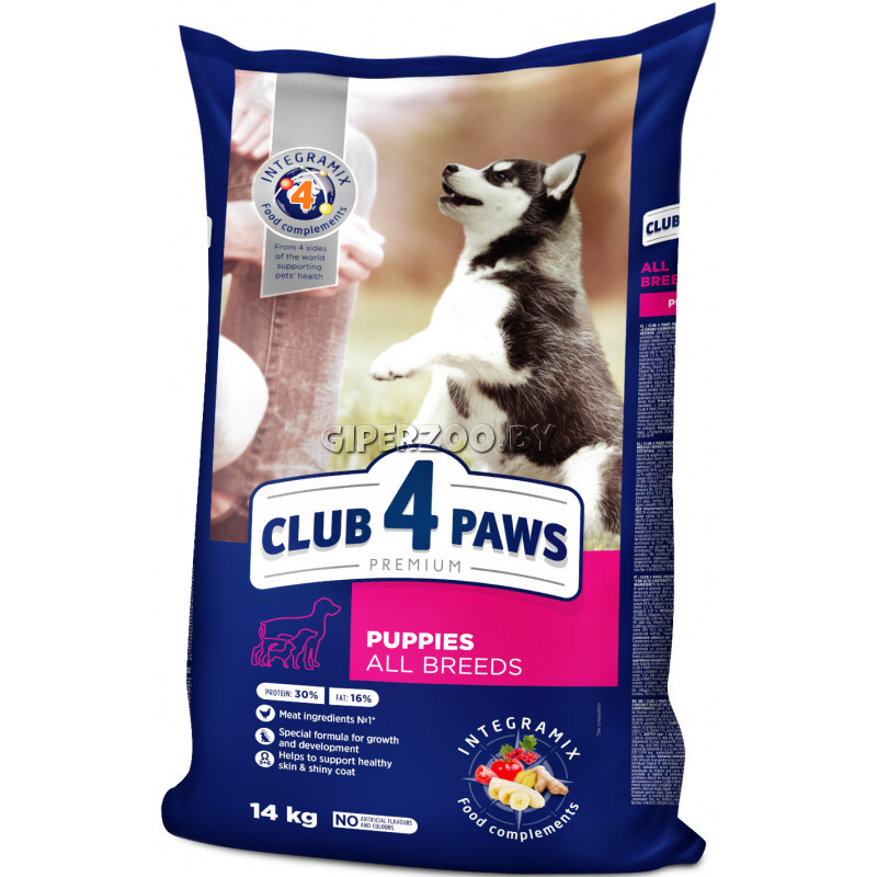 Club 4 Paws для щенков всех пород (курица), 14 кг - это полнорационный сухой корм с высоким содержанием курицы для щенков всех пород. Полноценное сбалансированное премиум-питание для щенков всех пород.