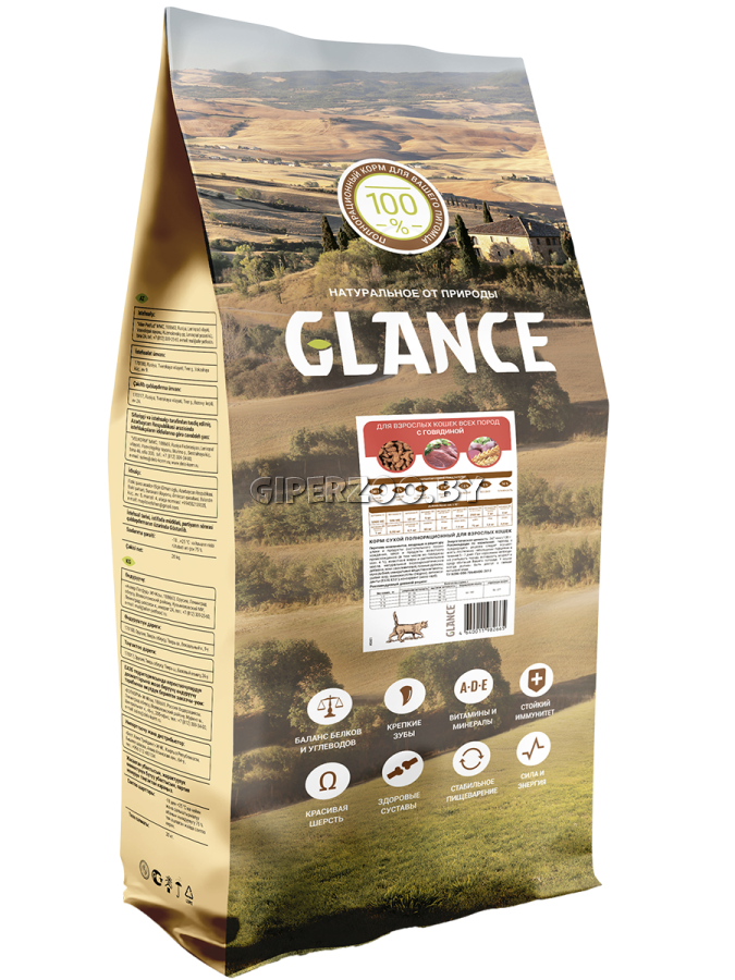 Glance для собак всех пород (говядина), 20 кг - рацион сбалансирован с учетом потребностей взрослых животных.