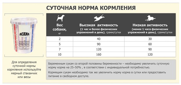 Так как каждая собака уникальна, нормы кормления могут меняться в зависимости возраста, темперамента, уровня активности и окружающей среды. Кормите Вашего питомца два-три раза в день и обеспечьте ему постоянный доступ к чистой, свежей воде.