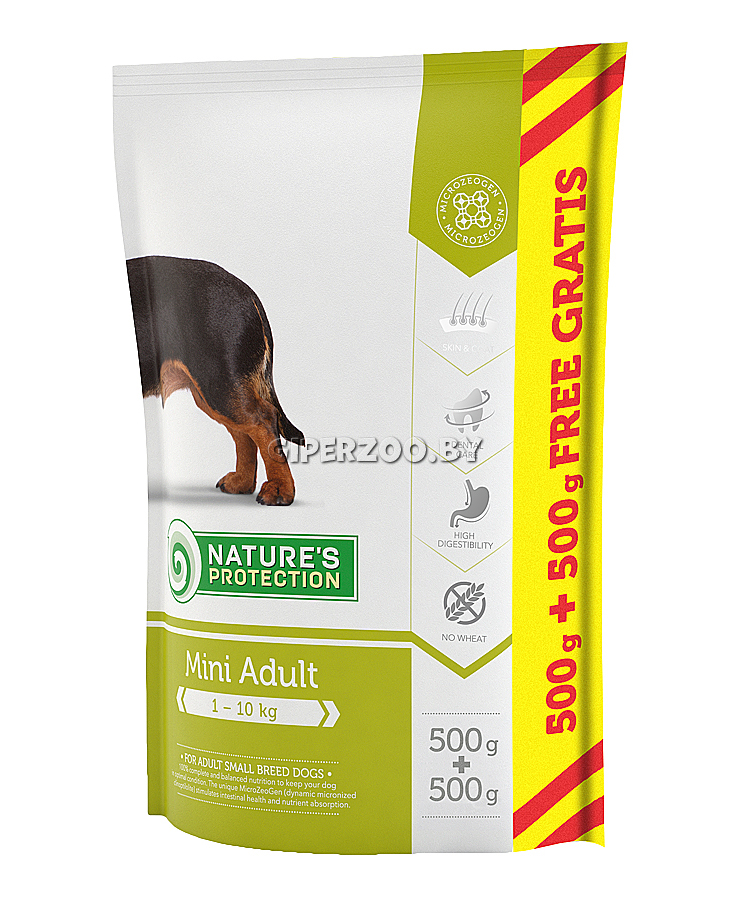 Nature's Protection Adult Mini (Натур Протекшн Эдалт мини), 1 кг - полноценный сбалансированный корм для взрослых собак малых пород (вес взрослой собаки: 1-10 кг)