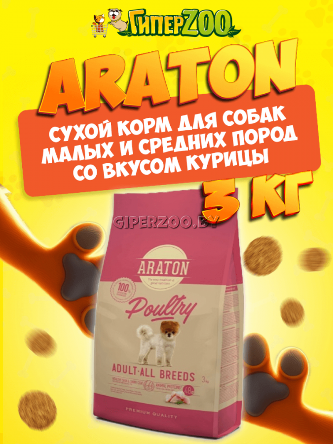 Сухой корм для собак Araton Adult Mini & Medium (Аратон Эдалт мини энд медиум), курица, 3кг - для повседневного питания взрослых собак малых и средних пород. Вес взрослой собаки до 30кг.