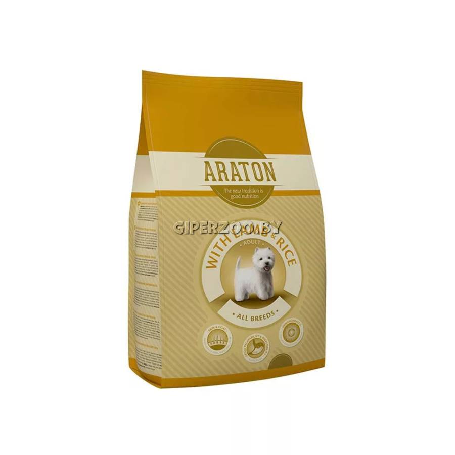 Araton Adult Lamb & Rice (ягненок и рис), 3кг - полноценный сухой корм с мясом ягненка и рисом, предназначенный для взрослых собак всех пород. Корм сделан из высококачественного сырья.