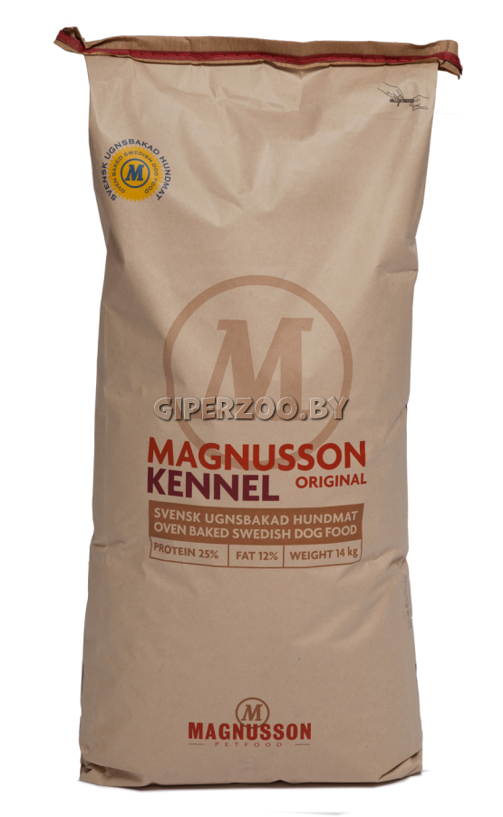 Magnusson Original Kennel (говядина), 14 кг - это полнорационный и сбалансированный корм для собак с нормальной активностью с добавлением пивных дрожжей для здоровья и красоты шерсти. Средние гранулы – 1,4 см.